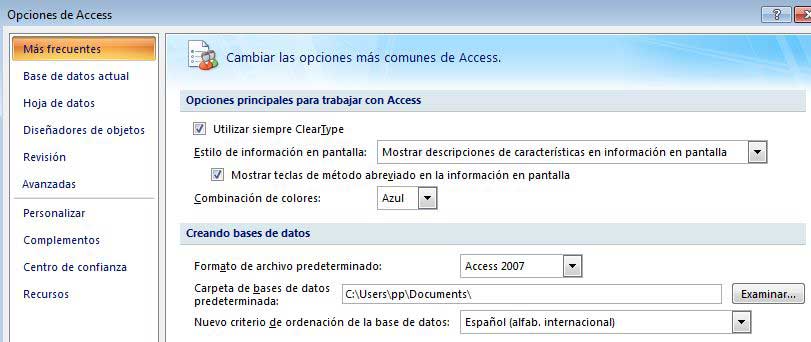 - CARPETA PREDETERMINADA: Para indicar la carpeta predeterminada donde busca los ficheros entre ellos el del logo: en Microsoft Office - Opciones de Access - Más frecuentes- “Carpetas de bases de datos predeterminada” seleccionar la carpeta deseada. En ella debes poner el logo "logo bueno.jpg" para que se vea, luego puedes modificarlo con el logo de tu AMPA.